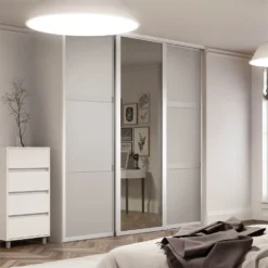 Shaker 3 Door Sliding Wardrobe Kit Dove Grey Panel / Mirror With Dove Grey Frame (W)2592 X (H)2260mm