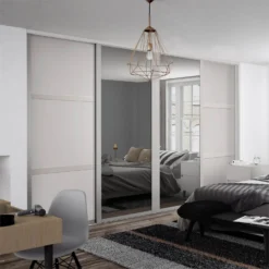 Shaker 4 Door Sliding Wardrobe Kit Dove Grey Panel / Mirror With Dove Grey Frame (W)2290 X (H)2260mm