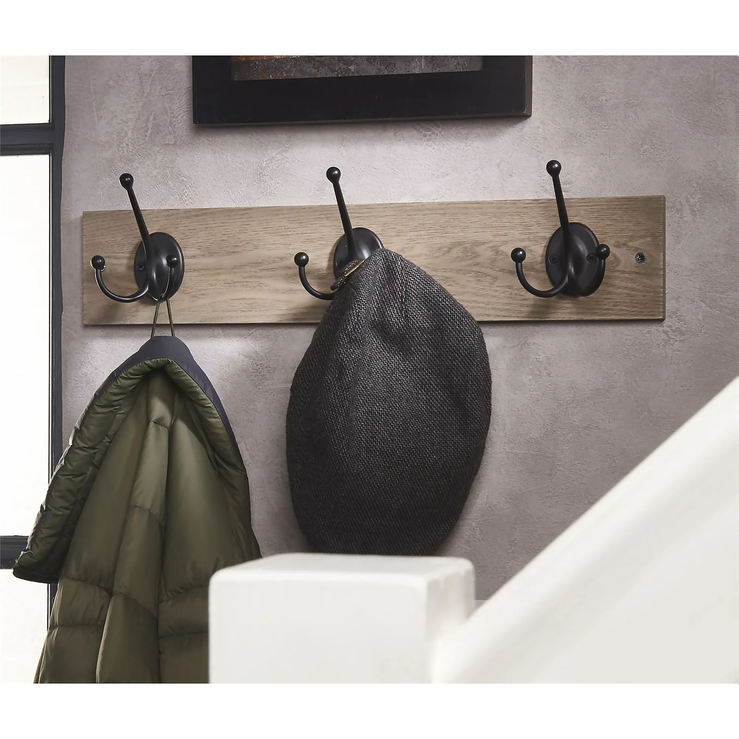 - 3 large matt black tri hooks provide ample hanging capacity for large coats and other garments.