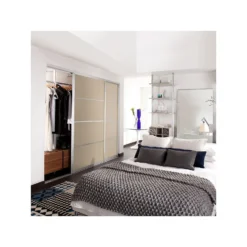 Ellipse Sliding Wardrobe Door 4 Panel Cream Glass With Aluminium Frame (W)914mm