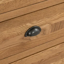 We’ve worked hard to make Norbury our most family-friendly range yet. We’ve softened all the edges, even the legs, so there are no sharp corners here. This compact collection has a small footprint, but its clever design doesn’t compromise on storage space. Meet our oak Norbury 5 drawer chest. With its classic oak finish and cup handles, it has a charming timeless design. Stow away your foldable clothes in the 3 wide drawers then use the top 2 drawers for your socks and smalls. The top surface also comes in handy for showcasing some of your favourite trinkets. This chest of drawers is a bedroom must-have.